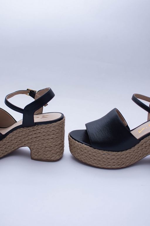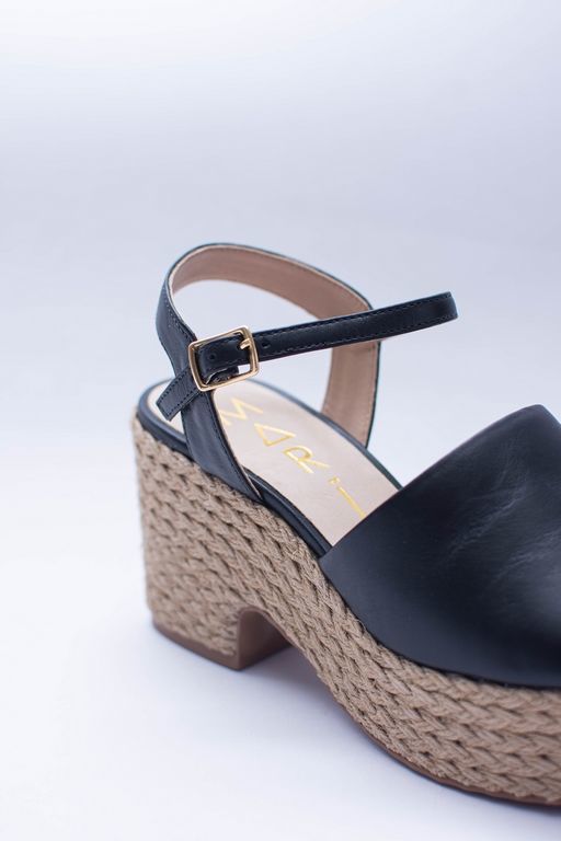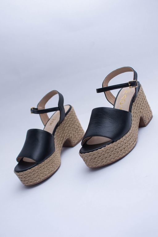 Sandalia de plataforma, super cómoda y trendy. Con plataforma forrada en cuerda y capellada en cuero.